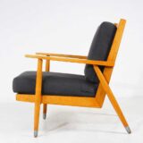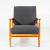 CARLFORD Nordic Style Solid Wood Armrests Suede Armchair for Living Room Bedroom
